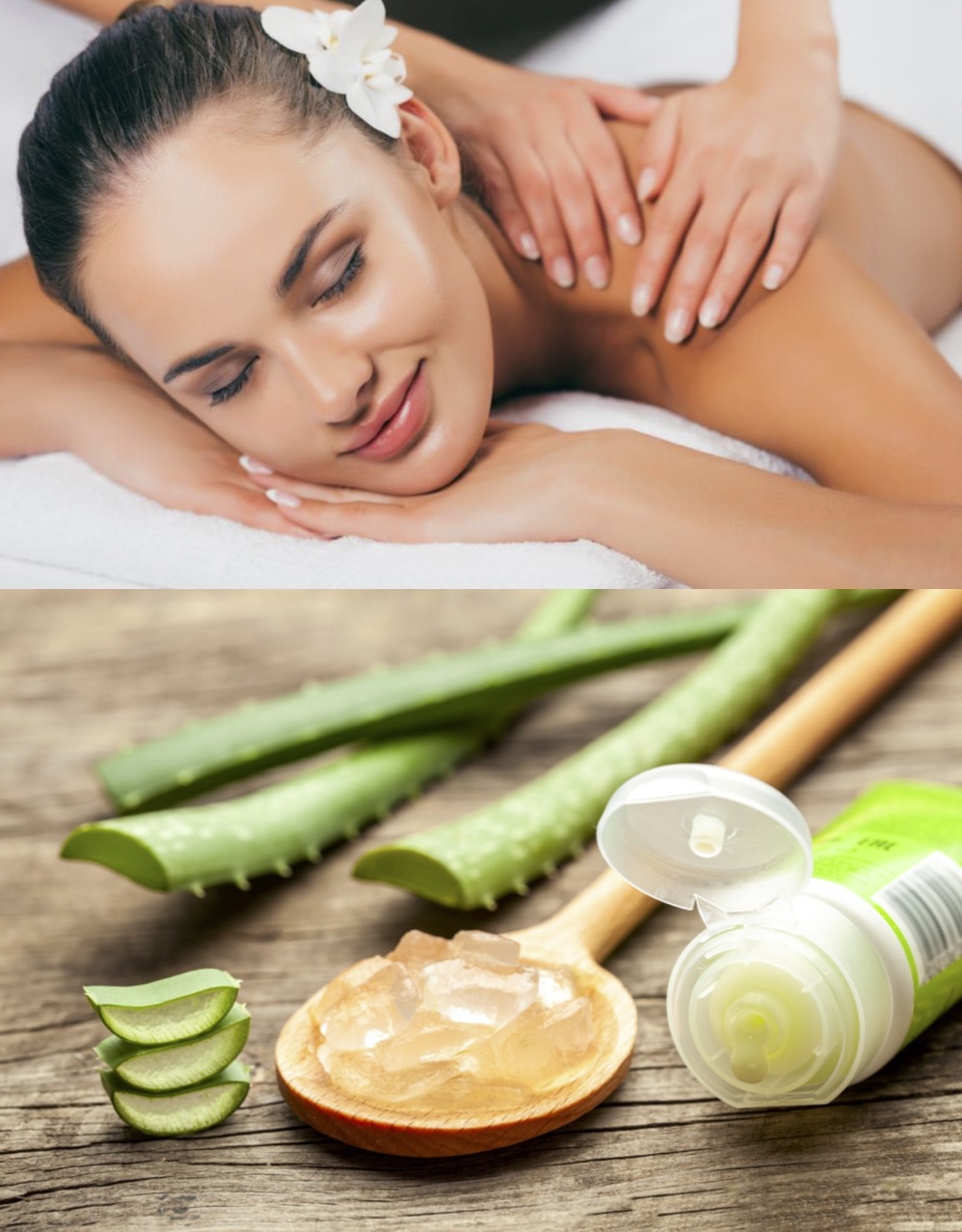 Il gel di Aloe ha proprietà cicatrizzanti, antinfiammatorie e rigeneranti, è inoltre un antibatterico naturale e un immunostimolante, in grado di incrementare la produzione di collagene. Beneficio per la muscolatura, per la circolazione sanguigna e linfatica, il massaggio relax rinfrescante è un toccasana: